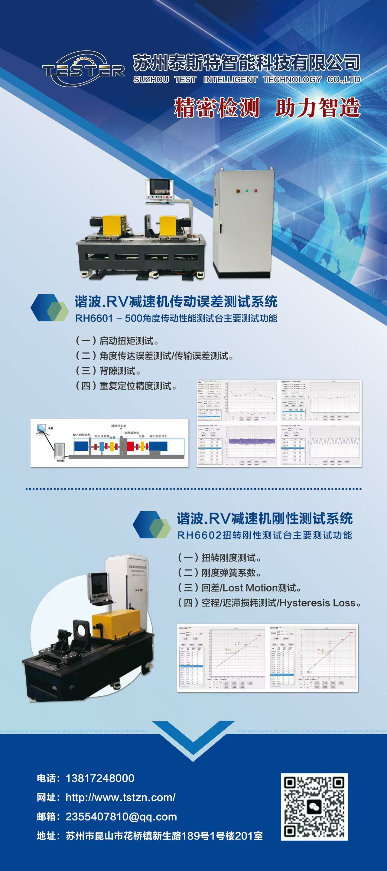 蘇州泰斯特智能科技有限公司以高、新、尖技術(shù)力量為核心,專注研發(fā)、生產(chǎn)、銷售精密行星減速機背隙測試機,減速機測功機,電機測功機,伺服壓力機,RV減速機,諧波減速機角度傳遞誤差測試,啟動力矩測試,背隙,剛性測試,回差測試,彈簧常數(shù),滯回曲線測試設(shè)備,排針機相關(guān)自動化設(shè)備的廠家, 本著“專注、只為更好”為核心理念,通過先進(jìn)的管理手段,將技術(shù)、品質(zhì)工藝改進(jìn),有效的融為一體,為客戶提供精密、穩(wěn)定、快捷的減速機檢測產(chǎn)品及方案。